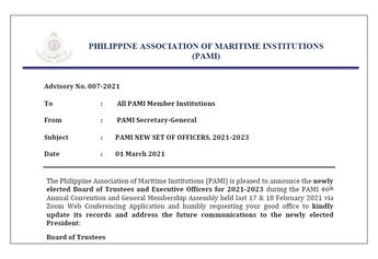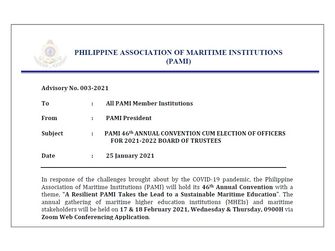 Advisory No. 003-2021 PAMI 46th ANNUAL CONVENTION CUM ELECTION OF OFFICERS FOR 2021-2022 BOARD OF TRUSTEES