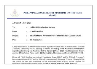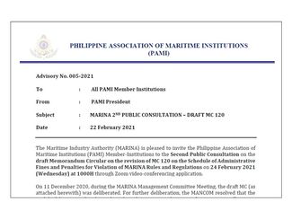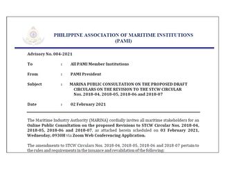 Advisory No. 004-2021 MARINA Public Consultation on the Proposed Draft Circulars on the Revision of the STCW Circular Nos. ....